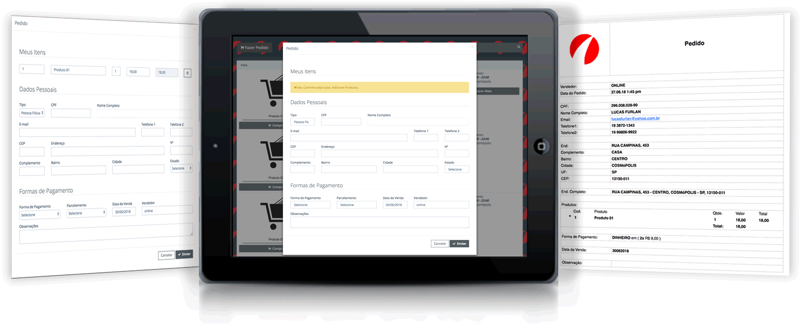 Com apenas 1 clique seus produtos são inseridos no carrinho de compras. Todos os dados que você precisa de seus clientes chegaram até você através do sistema de pedido.